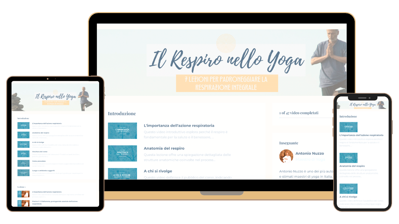 Antonio Nuzzo - uno dei più autorevoli Maestri di Yoga in Italia - ti guiderà passo passo ad approfondire la tua conoscenza del processo respiratorio e a recuperare la tua completa capacità di respiro.